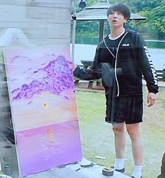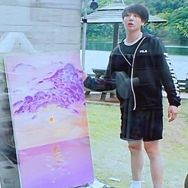 Особенно участников BTS впечатлил момент в одном из эпизодов «In The SOOP», где Чонгук неожиданно для всех написал красивый пейзаж. Также известно, что он расписал кроссовки и подарил их J-Hope — позже эта пара была представлена в музее BTS от HYBE. Экспонат находился в зале, где запрещены фото и видеосъемка, поэтому увидеть его можно было лишь по редким снимкам. Сейчас музей, посвященный BTS, уже закрыт, но информация и фотографии сохранились в Сети.