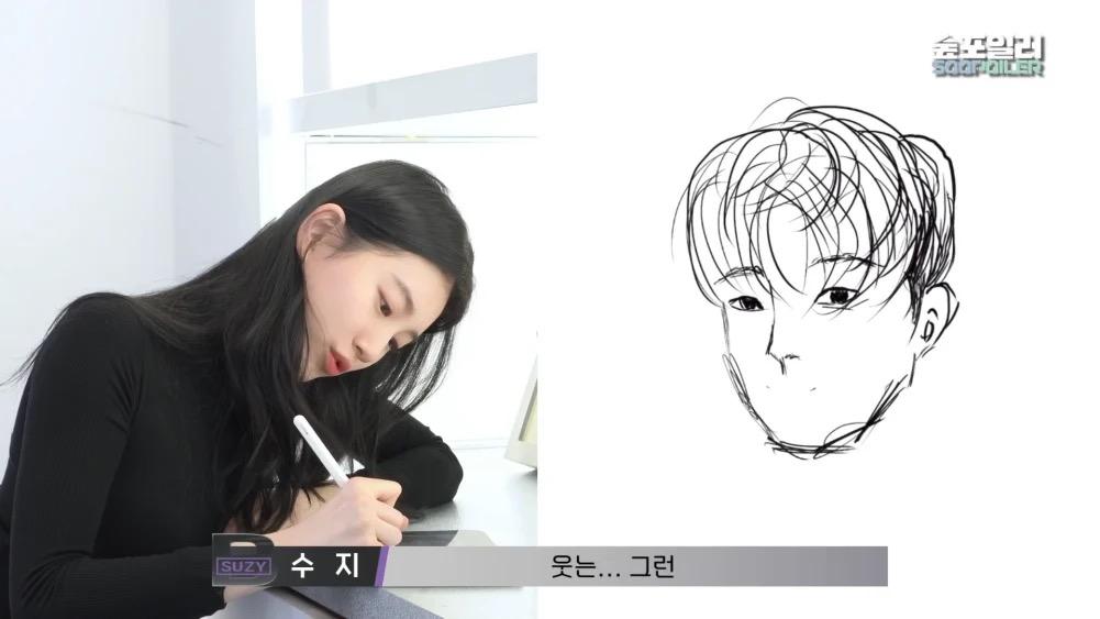 В 2022 году Management Soop опубликовали видео, на котором Сюзи рисует своего коллегу Чхве У Щика после того, как он пытался нарисовать ее. Честно сказать, девушка оказалась гораздо способнее, ведь ее рисунок привлек очень много внимания со стороны фанатов, показав, что она не только хорошая певица и актриса, но и талантливая художница.