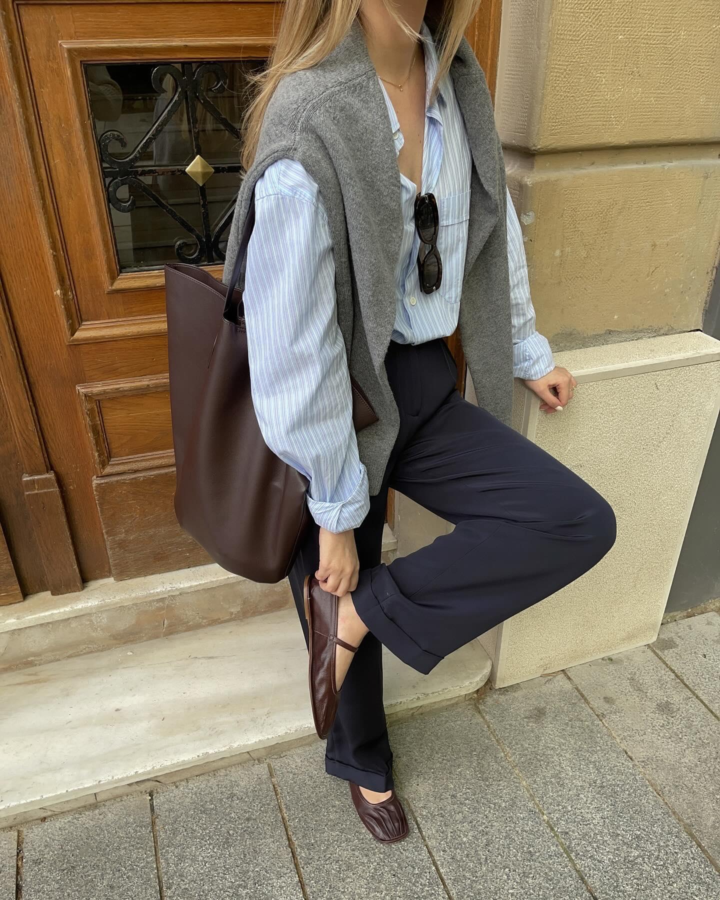 Если ты учишься в университете, где допускается свободный стиль, отлично подойдет монохромный образ: например, серый свитер и черные прямые джинсы. А если предстоит устный экзамен или защита, можно добавить немного структуры — жакет, жилет или аккуратную рубашку с воротником. Важно, чтобы все сидело по фигуре, но не сковывало движений 😉