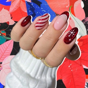 Лучшим новогодним маникюром станет красный «кошачий глаз» с френчем, снежинками и другими дизайнами ногтей