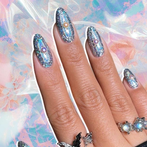 БьютиГолографический маникюр со стразами — самый необычный блестящий дизайн ногтей на зиму 2026