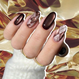 БьютиКоричневый маникюр в клетку аргайл — блестящий дизайн ногтей в стиле преппи на весну 2026