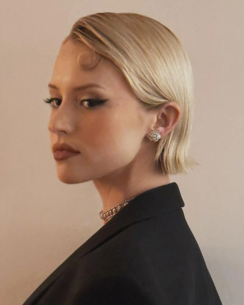 Кто сказал, что короткие волосы не могут быть эффектными? Этот гладкий боб с глубоким боковым пробором — отличное подтверждение! Для этой прически тщательно выпрями волосы утюжком, чтобы они лежали идеально гладко, и зафиксируй лаком, уделяя особое внимание кончикам.