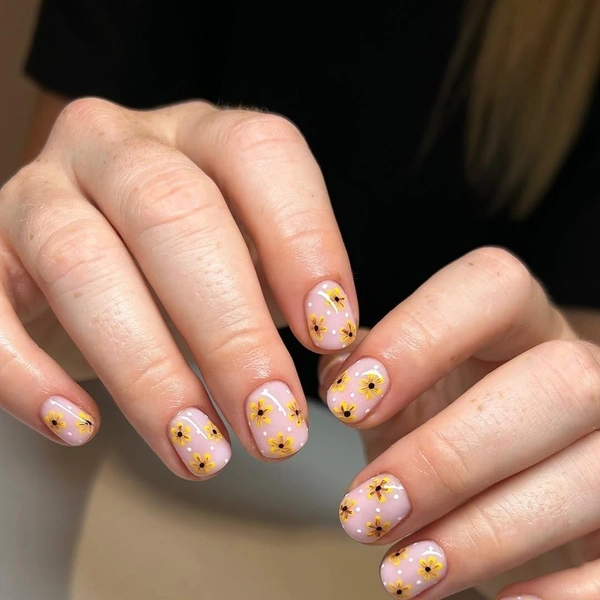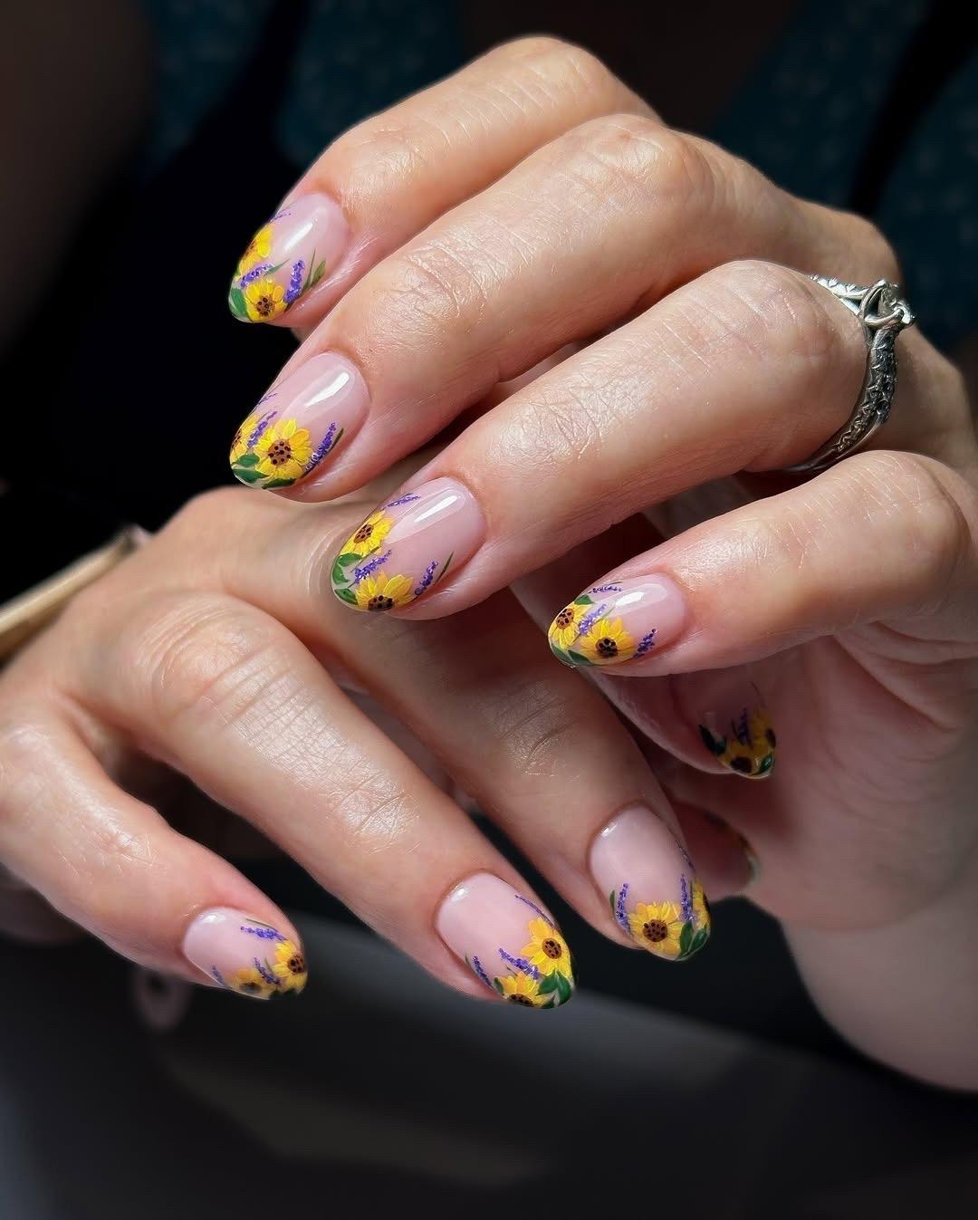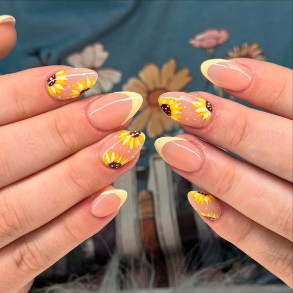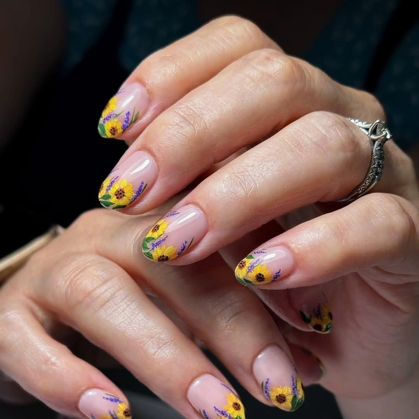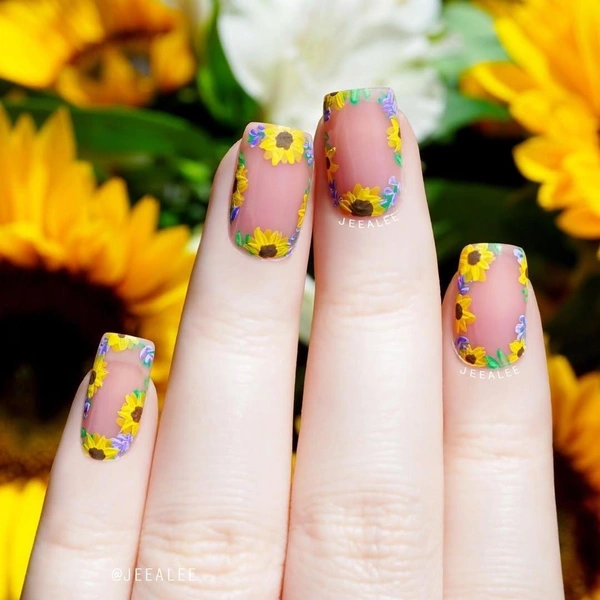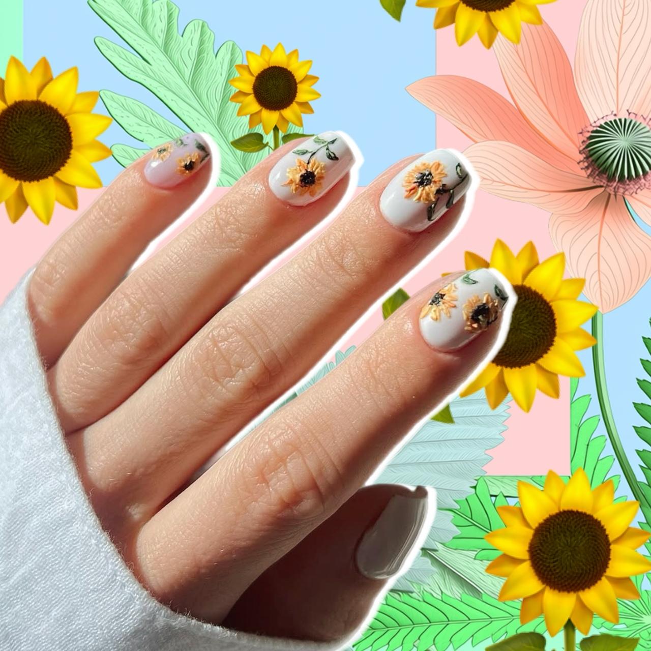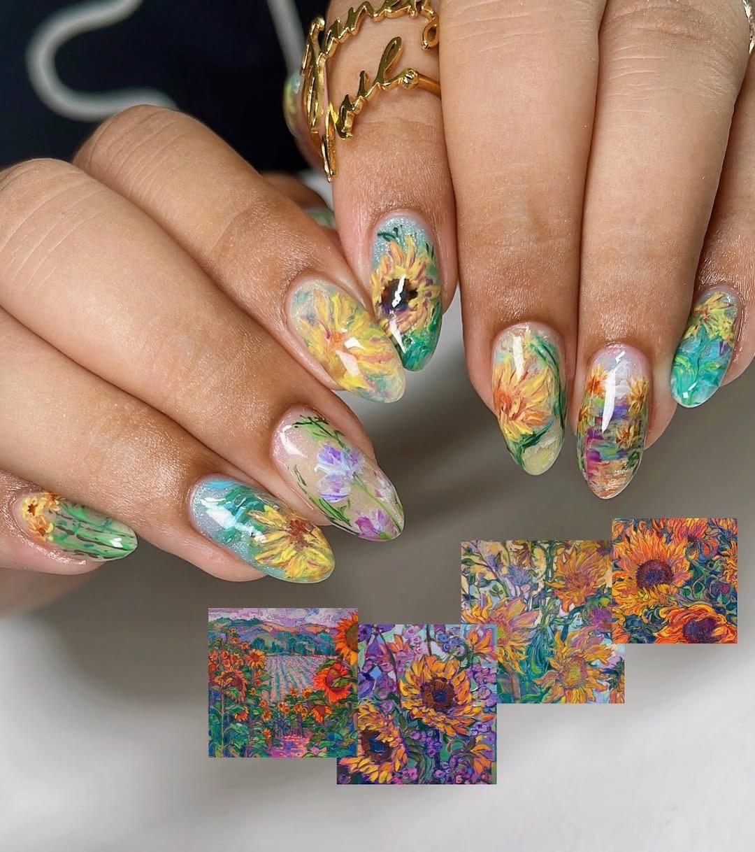 Если ты носишь длинные ногти и умеешь рисовать, то советую вдохновиться работами Винсента ван Гога. У него есть целая серия картин с этими яркими цветами. Ну или бери на заметку другие произведения с подсолнухами в стиле импрессионизма и постимпрессионизма.