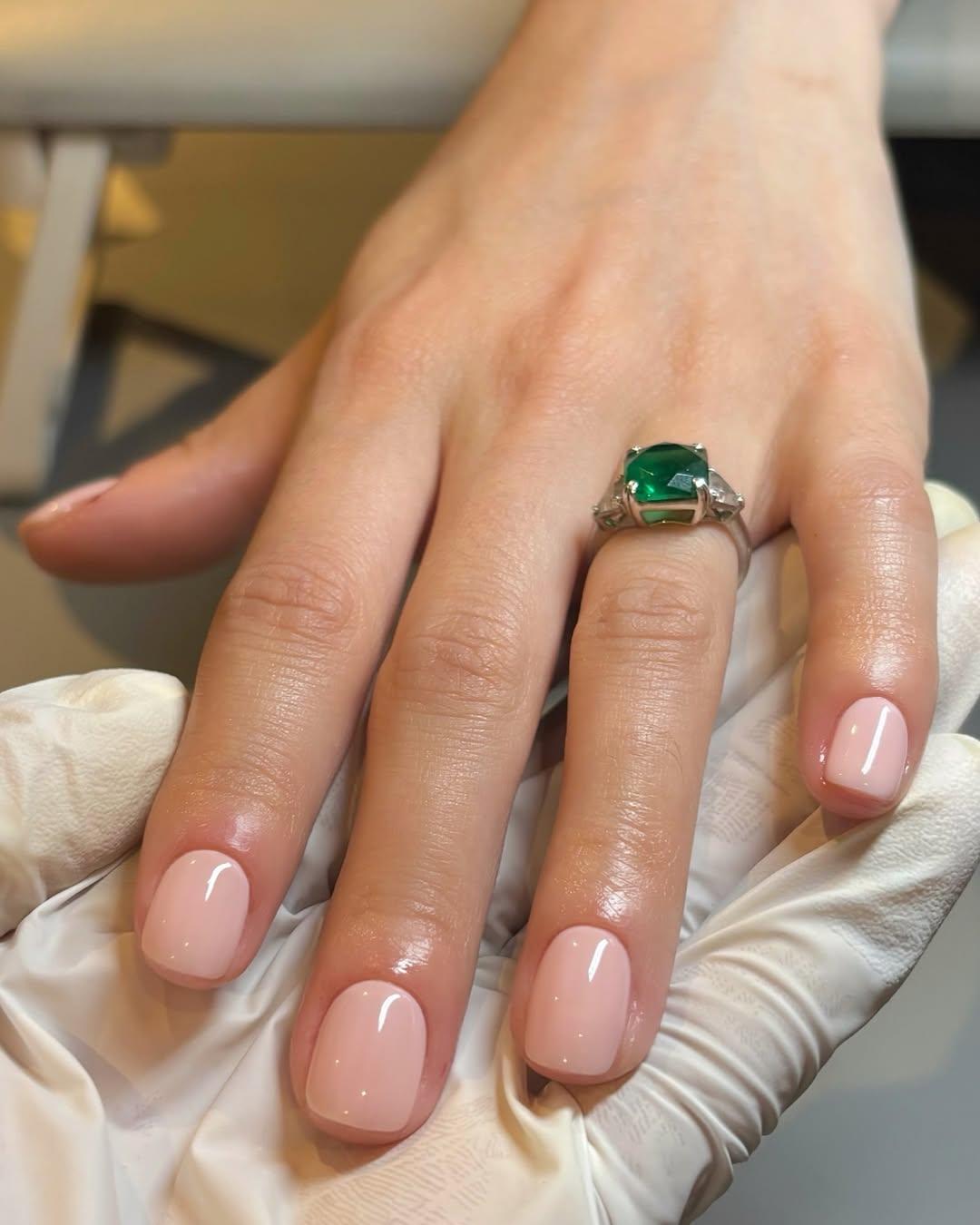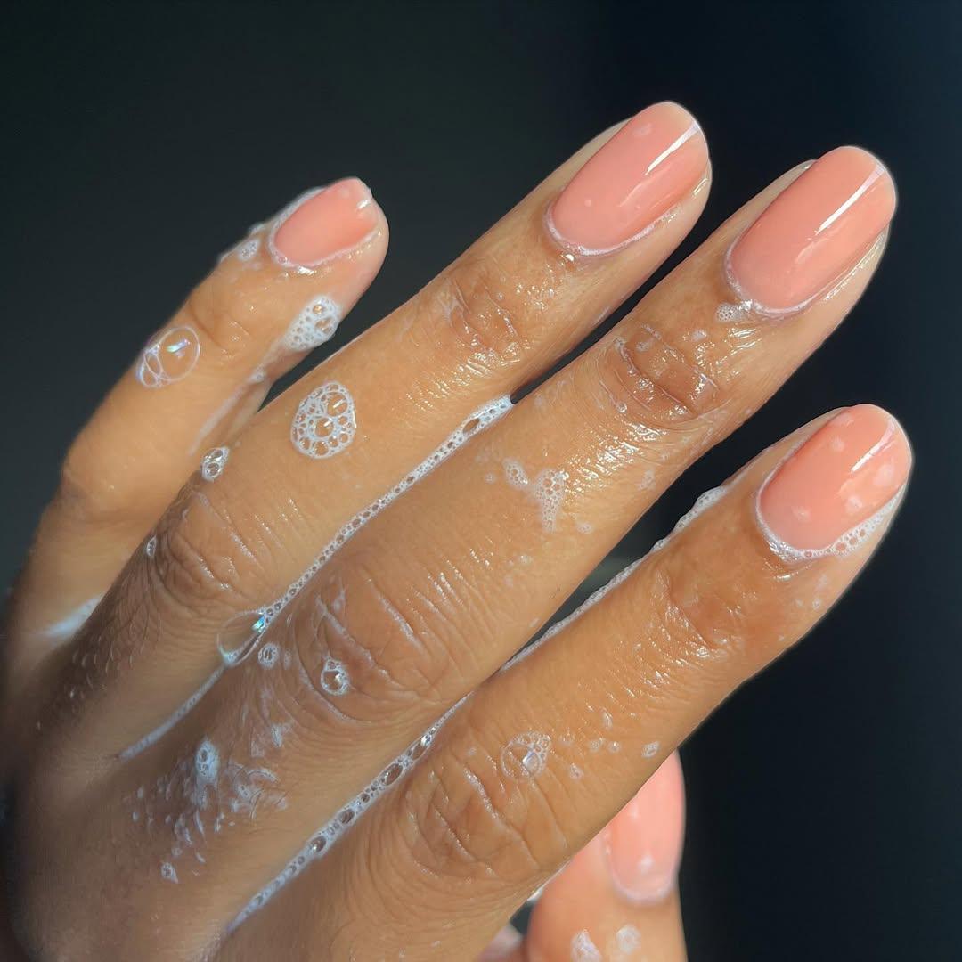 Персиковый нюд нравится девушкам с теплым подтоном кожи. Он подчеркивает элегантность рук и делает их более ухоженными. Такой маникюр оценят те, кто хочет носить нюд, который выглядит необычным, но при этом нежным.