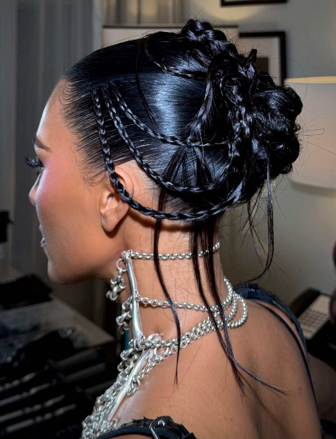 В современной интерпретации эти прически становятся менее симметричными и более текстурными. Косы могут быть разной толщины, небрежно выбившиеся пряди добавляют живости, асимметрия создает динамику. Хотя эти исторически вдохновленные образы обычно представляют собой буквально гнездо кос и локонов, они также могут быть очень скульптурными.