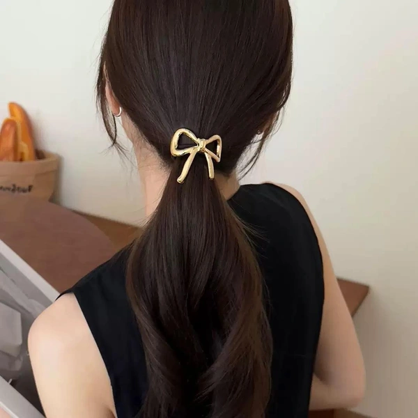 Самый простой вариант — распущенные волосы, украшенные несколькими мелкими заколками с бантиками. Можешь закрепить пряди у висков, зафиксировать челку или хаотично разместить заколки по всей голове. Это добавляет игривости даже самой обычной укладке. Такая прическа подойдет для любой длины, но особенно мило она смотрится на коротких волосах и каре.