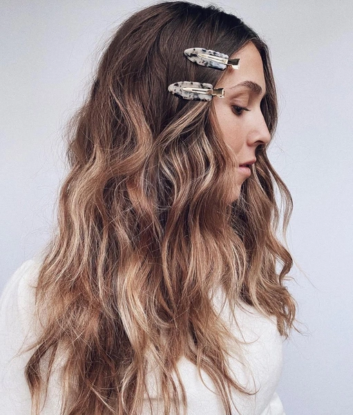 Тут все очень просто — накрути волосы и заколи несколько прядей у висков декоративными зажимами. Выбирай украшения в ярком или металлическом цвете, со стразами или цветами. Это отличный способ освежить любые локоны, но лучше всего подойдет тонким волосам.