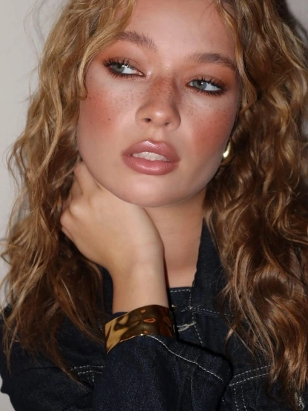 Если тебе нравится эффект «стеклянных» губ, выбирай очень светлый нюдовый блеск с персиковым подтоном. Наноси его густым слоем, чтобы добиться максимального глянцевого перелива. Такой макияж добавляет образу легкости и отлично освежает лицо. Он идеально подходит к сияющему тону кожи и объемным ресницам.