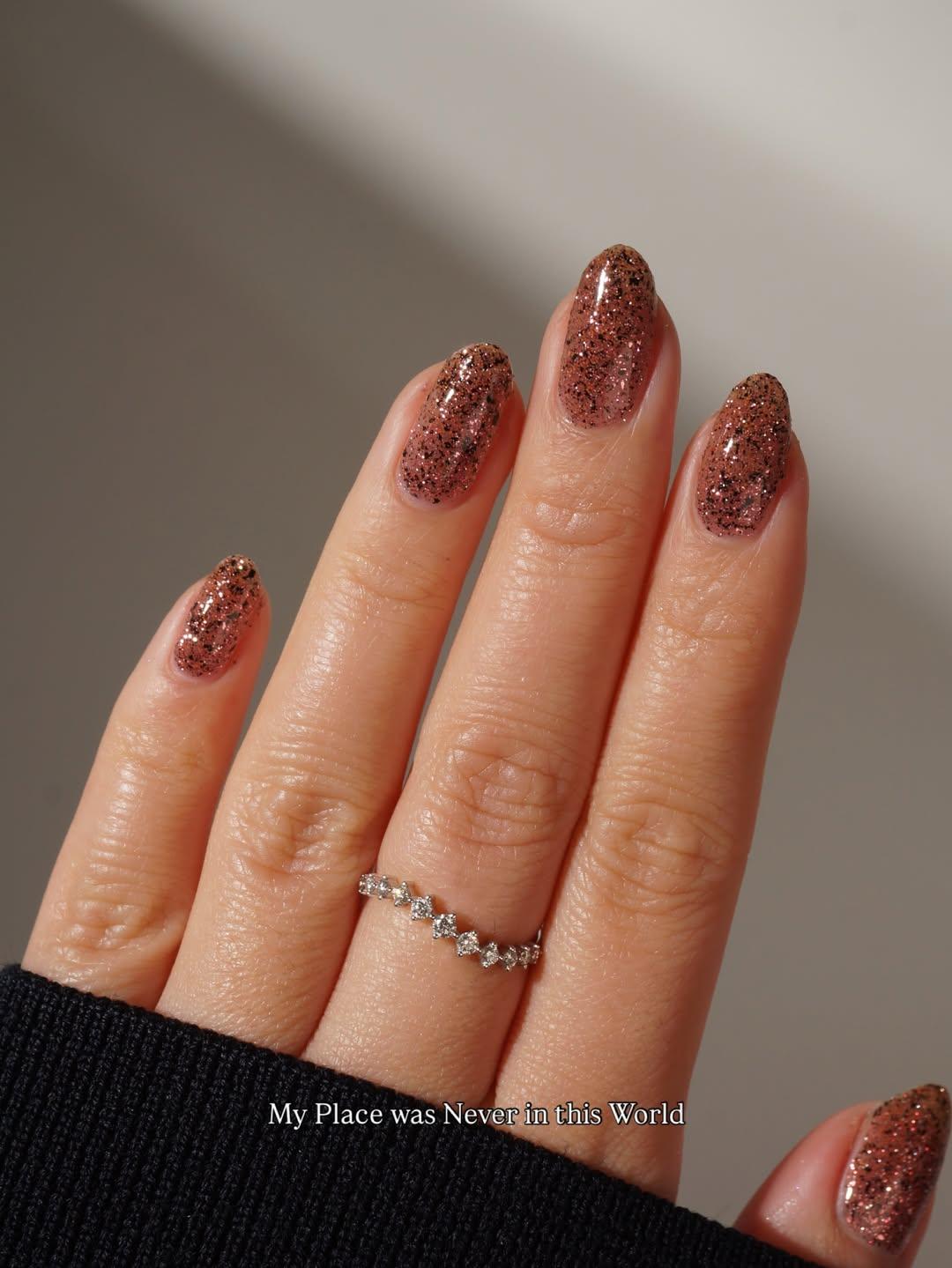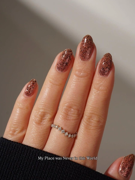 Коричневый маникюр с блестками