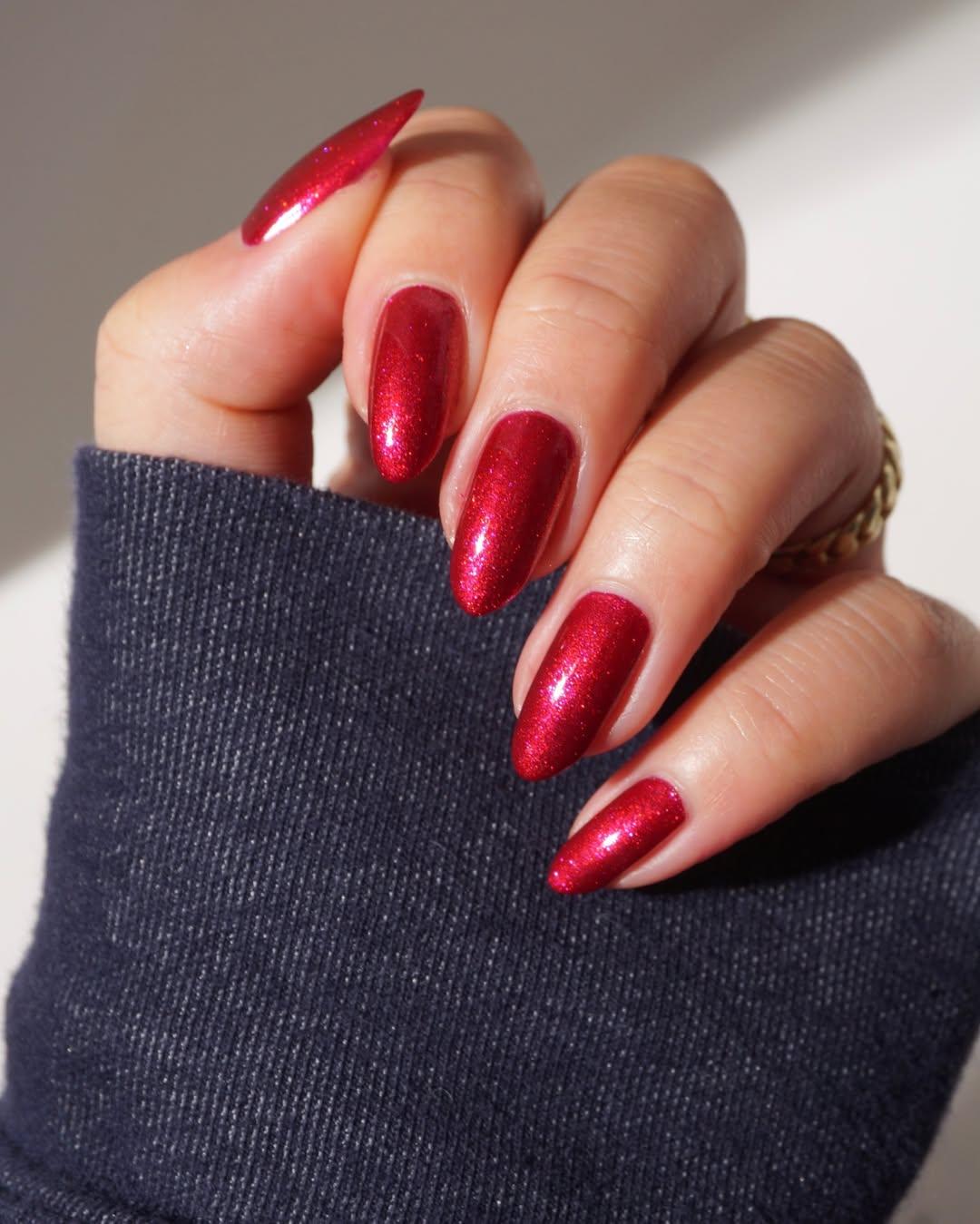 Красный маникюр весной очень поднимает настроение! Но главное — найти подходящий оттенок. И советую обратить внимание на лаки с блестками. Они выглядят ярче и эффектнее. Такой маникюр легко заменит украшения и придаст выразительность даже самому простому образу. Повторяй!