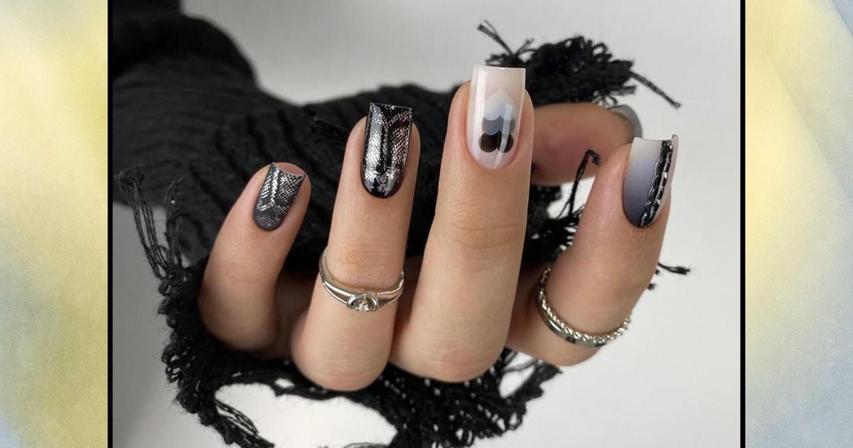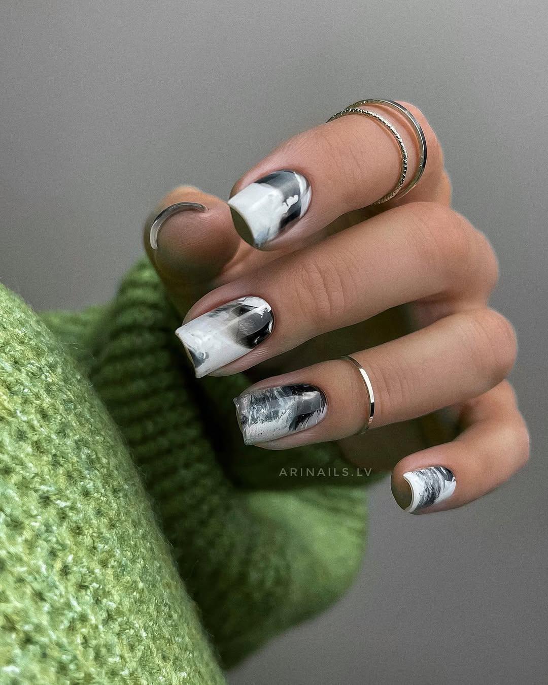 Черно-белый маникюр с добавлением серого
