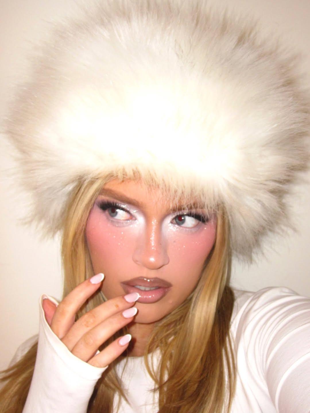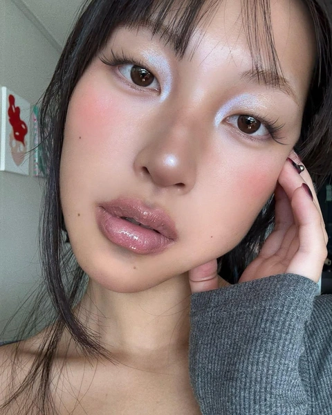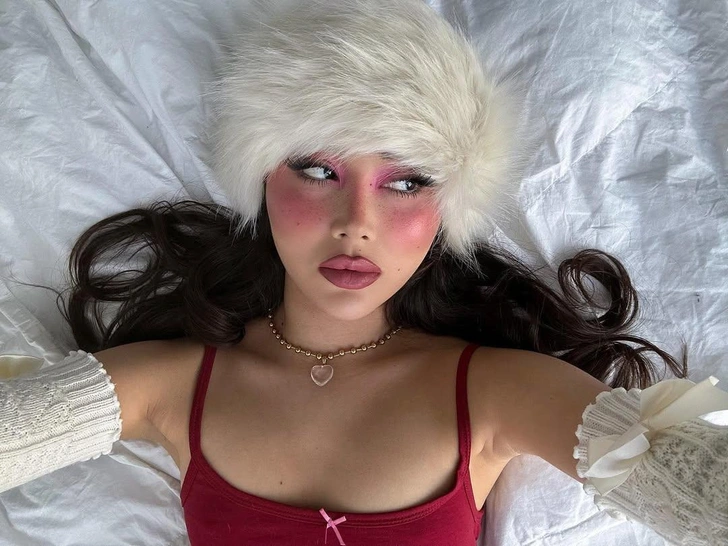 Не так давно бьюти-блогеры ввели новый тренд на «морозный» макияж. Без сияющих белый теней в уголке глаза он просто не может существовать: для большего сияния добавь хайлайтер. В складку века нанеси светло-фиолетовый или голубой, растягивая цвет к виску для лисьего эффекта. Немного накладных ресниц и холодно-розовых румян — теперь ты выглядишь как принцесса из новогодней сказки!