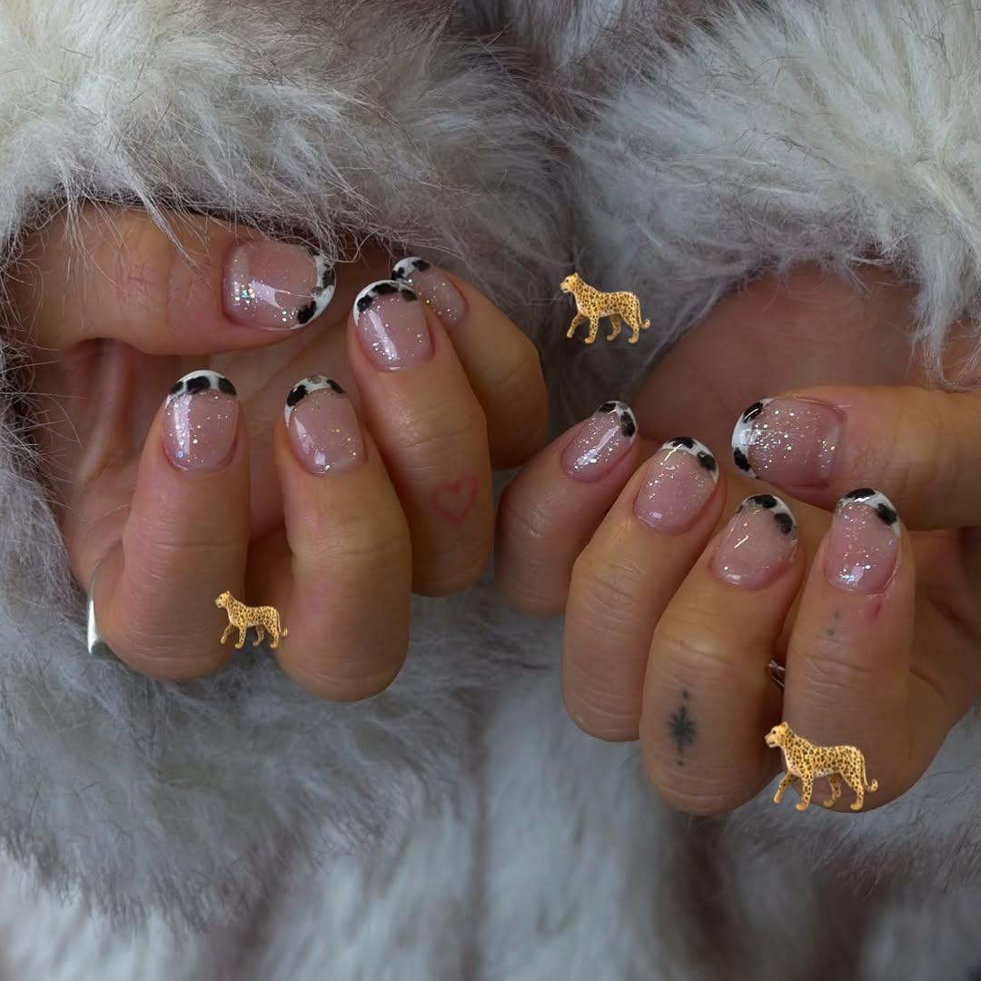 Анималистичный принт набирает обороты — на этот раз в центре внимание леопард. Правда, теперь его не выполняют в присущих ему натуральных оттенках, а в совершенно иных. Например, в белом и черном — классика никогда не покинет нейл-арты. Тем более, такое сочетание подойдет под абсолютно любой образ и повод.