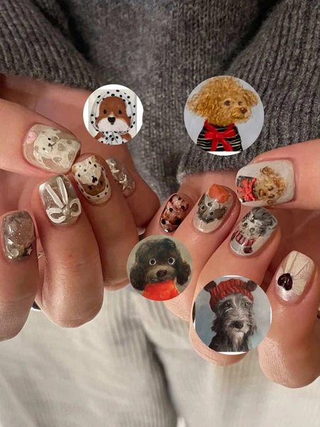 Я нашла самую милую идею нейл-арта на эту зиму — маникюр с очаровательными животными. Здесь можно дать волю фантазии: нарисовать собственных, любимых питомцев, или же тех, кто приглянулся тебе в соцсетях. Повторить их достаточно сложно, но можно поискать похожие наклейки или же обратиться к профессионалу. Чтобы не потеть над каждым ноготком в детальной прорисовке, их можно разбавить звездами, сердечками и бантами.