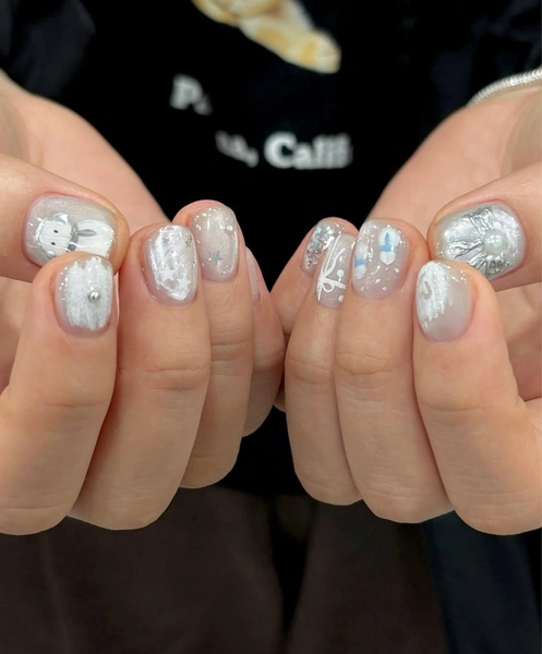 Во многих городах сейчас не хватает того количества снега, которого хотелось бы на самом деле. Для новогоднего настроения хочется видеть большие сугробы и яркие снежинки, но всегда получается так, как мы хотим. Предлагаю тебе попробовать снежный корейский маникюр с большим количеством акцентов!