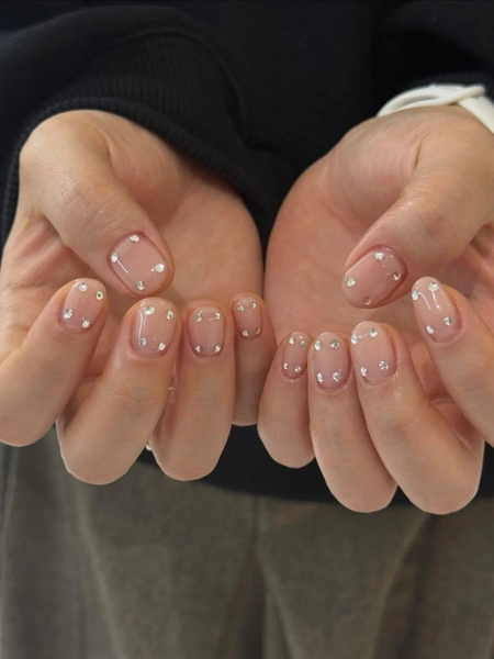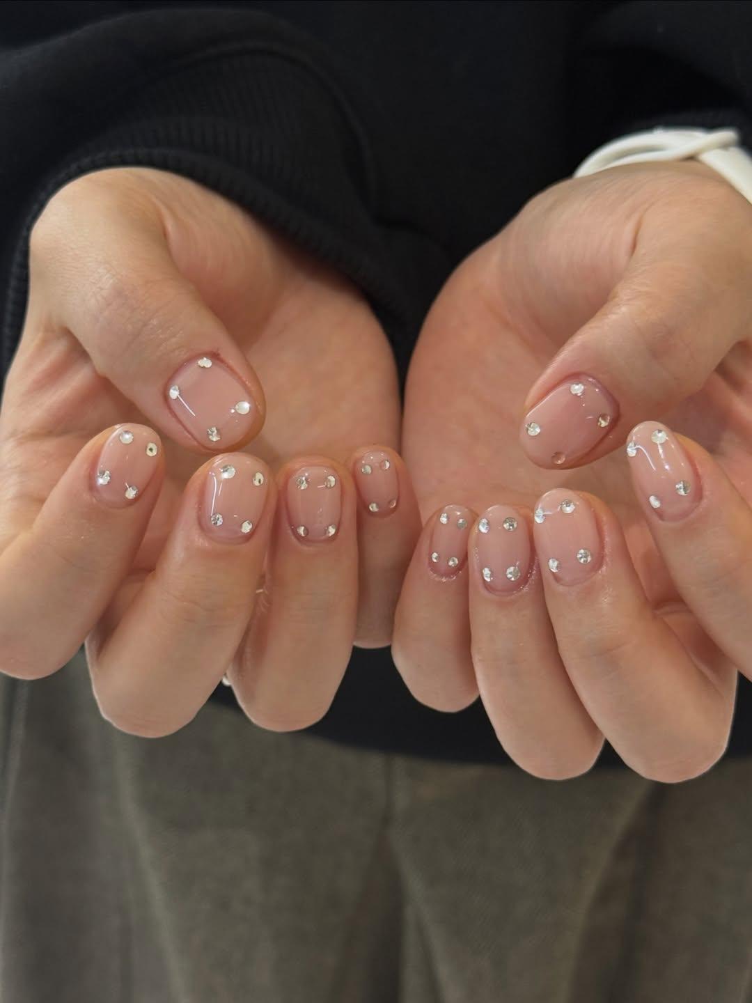 Для тех, кто делает нюд из года в год и никак не может привыкнуть к контрастным оттенкам — лови решение. Для кого-то оно может показаться уж слишком ярким, но это отличный шаг к новым нейл-образам. Просто добавь к своему любимому цвету бежевого оттенка металлические блестки. Их не обязательно размещать на ноготках в одном направлении: можно играть с формами и рисунками. Самый простой и эффектный вариант — наклей стразы параллельно друг другу с обеих сторон.
