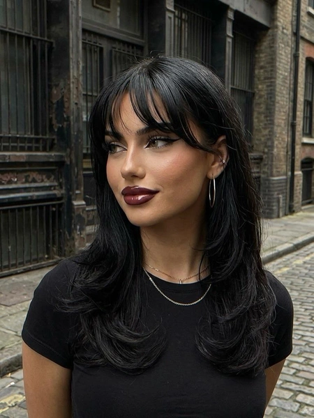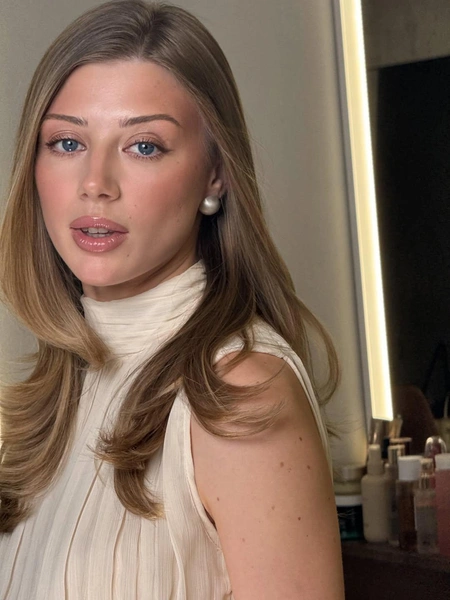 Самый объемный вариант в этой подборке! Слои начинаются от уровня подбородка или даже выше, создавая «шапочку» на макушке и легкость на концах. Волосы выглядят живыми, подвижными, с четкой текстурой. Но увы, подойдет она только девушкам с густыми волосами, которым нужно разгрузить длину. На тонких волосах эта стрижка может выглядеть жидкой.