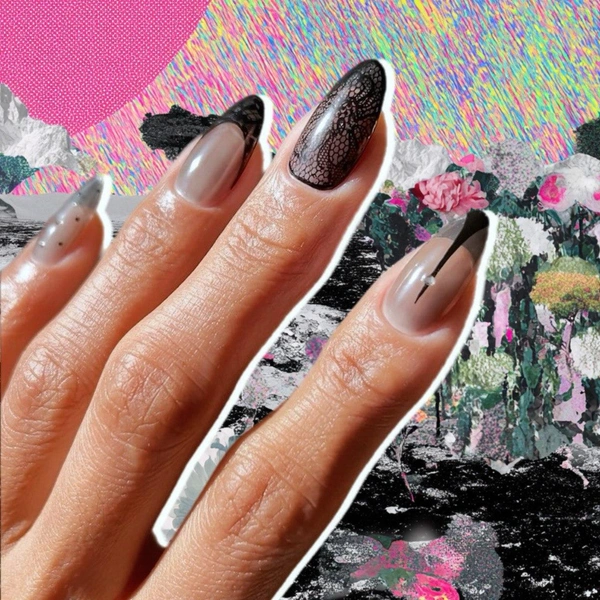 Неудивительно, что эта эстетика в итоге перекочевала в маникюр. Ажурные и «чулочные» ногти стали зимним ответом летним желейным ногтям-мармеладкам. Те же полупрозрачные текстуры, нюдовые и темные оттенки, ощущение кожи под тонким слоем покрытия, но теперь с графикой и узорами, отсылающим к рисунку на резинке чулок. Давай рассматривать самые красивые нейл-арты!
