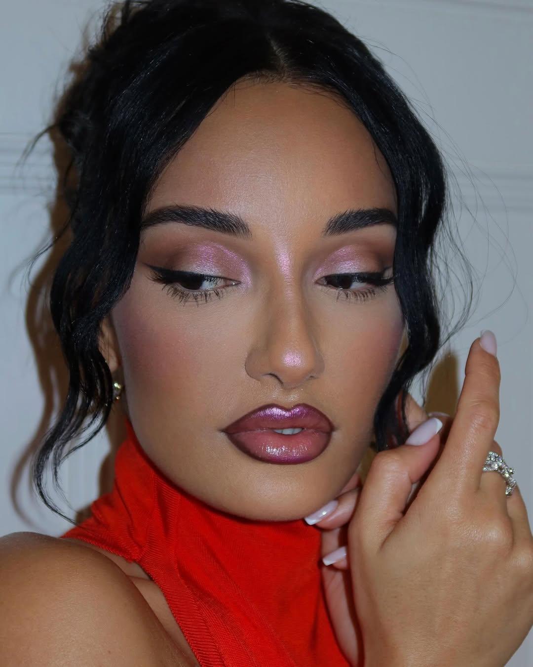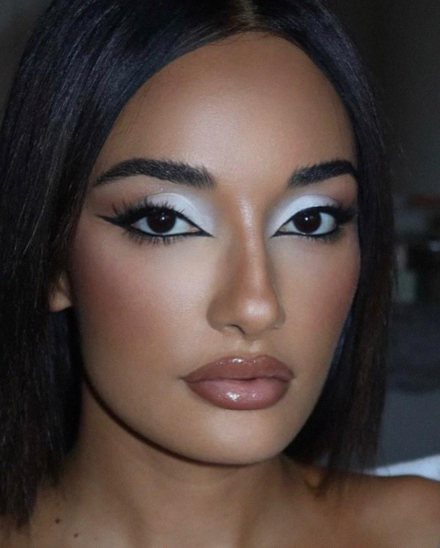 Делюсь формулой макияжа, которую точно стоит повторить на новогоднюю вечеринку или корпоратив. Его главная деталь — это не губы, а глаза. Нарисуй самые длинные, яркие и нарядные стрелки, которые умеешь. Сочетай в них несколько цветов, графичность и растушевки. А для губ выбирай комбинацию нюдового контура с сияющим прозрачным блеском.