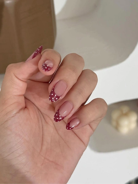Красный френч — уже классика зимы, но в этом сезоне он получает легкий намек на ретро. Горошек добавляет дизайну игривости и делает его менее драматичным. Белые точки на красной линии френча смотрятся свежо, хоть и выглядят как привет из модных 60-х. Этот вариант отлично работает и на коротких ногтях, но на длинных он раскрывается просто роскошно.