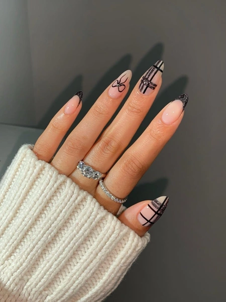 Я уже не раз говорила, что клетка популярна даже среди селебрити — такой нейл-ход особенно приглянулся Кайли Дженнер и Ванессе Хадженс. Маникюр с таким ярким дизайном точно притянет огромное количество взглядов. Френч, банты, стразы — то, что нужно для той, кто ценит контрастные элементы. Используй базовый черный и сияющий лак в тон, чтобы создать рефлективный эффект. Просто замиксуй их вместе и наслаждайся результатом!