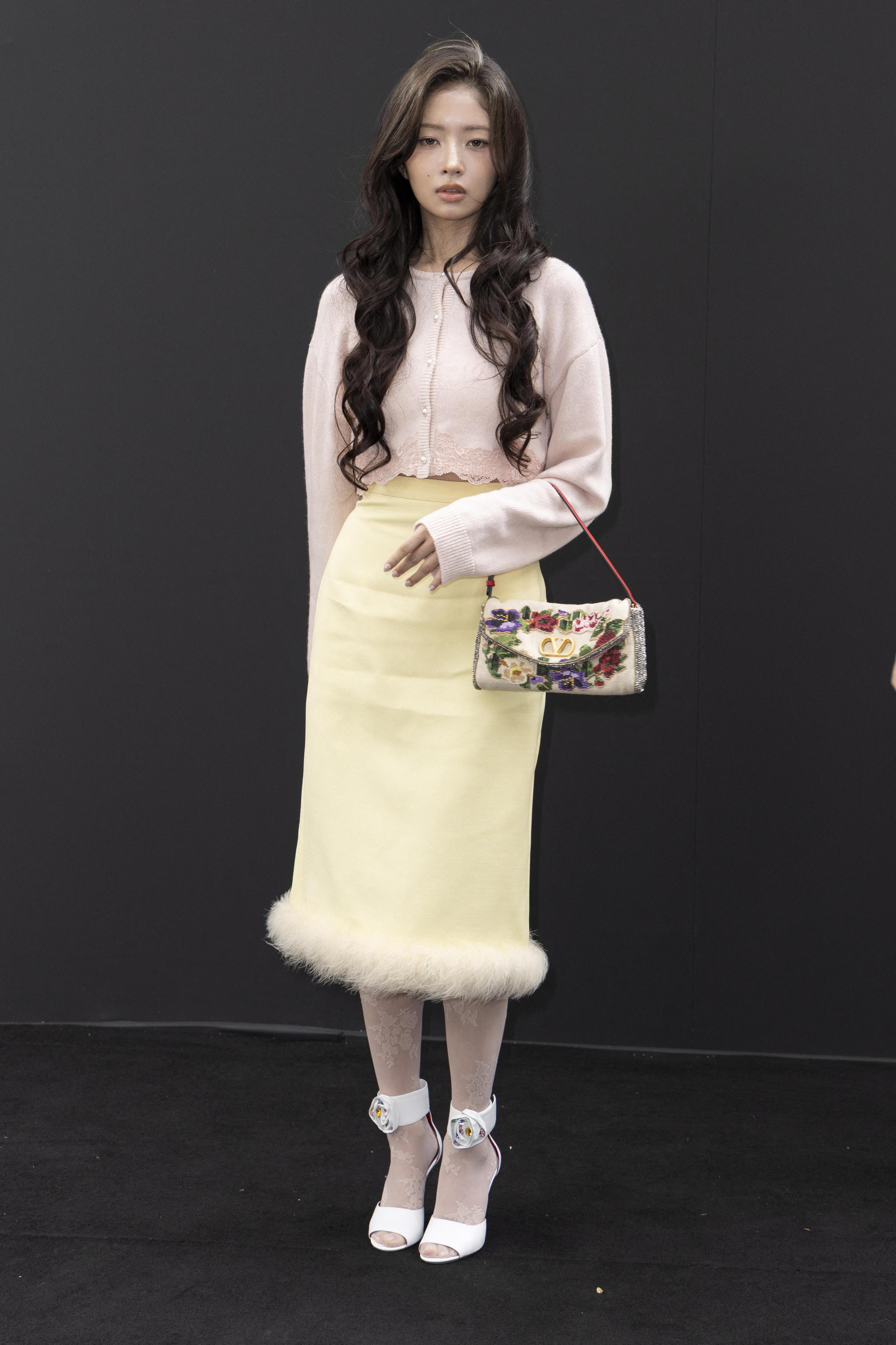 Еще на Неделе моды засветились девчонки из IVE. Рэй пришла на показ Valentino. Ее лук — сочетание самых стильных пастельных оттенков сезона. Певица надела светло-розовый кардиган со сливочно-желтой юбкой, отороченной мехом. Белые туфли, кружевные колготки и сумочка как у Ланы Дель Рей идеально дополнили образ.