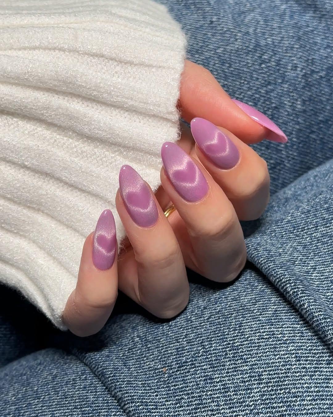 Как только на него падают лучи солнца или контрастный свет: он выглядит очень эффектно, не правда ли? Я собрала для тебя несколько крутых идей с эффектом «кошачьего глаза» — от дерзкого винного до розового с сердечками.