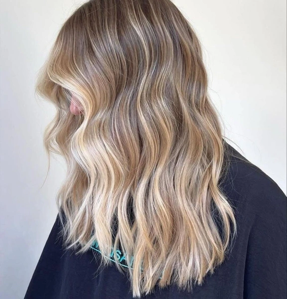 В бежевом бронде выдержан идеальный баланс между теплым и холодным оттенком. И поддерживать его, конечно же, сложнее: тебе стоит выбрать правильный фиолетовый шампунь, который не будет отдавать излишней синевой на локонах.