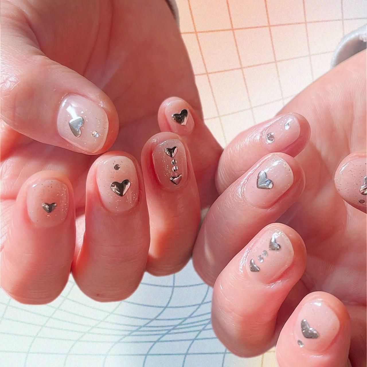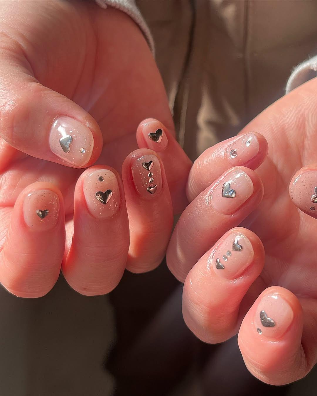 Маникюр со стразами-сердечками
