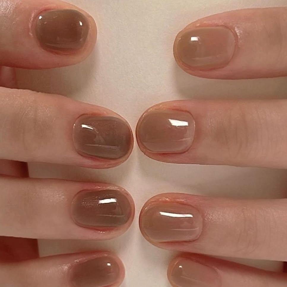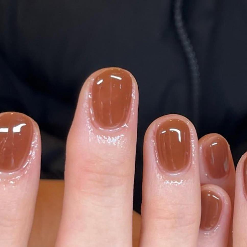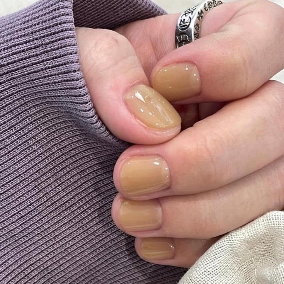 Ногти цвета карамели — это идеальный нюд для тех, кто любит нескучные оттенки. Устала от традиционных розовых, молочных и персиковых тонов? Выбирай теплую карамель с шоколадным подоном. Этот маникюр будет радовать тебя и сочетаться с самыми разными нарядами.