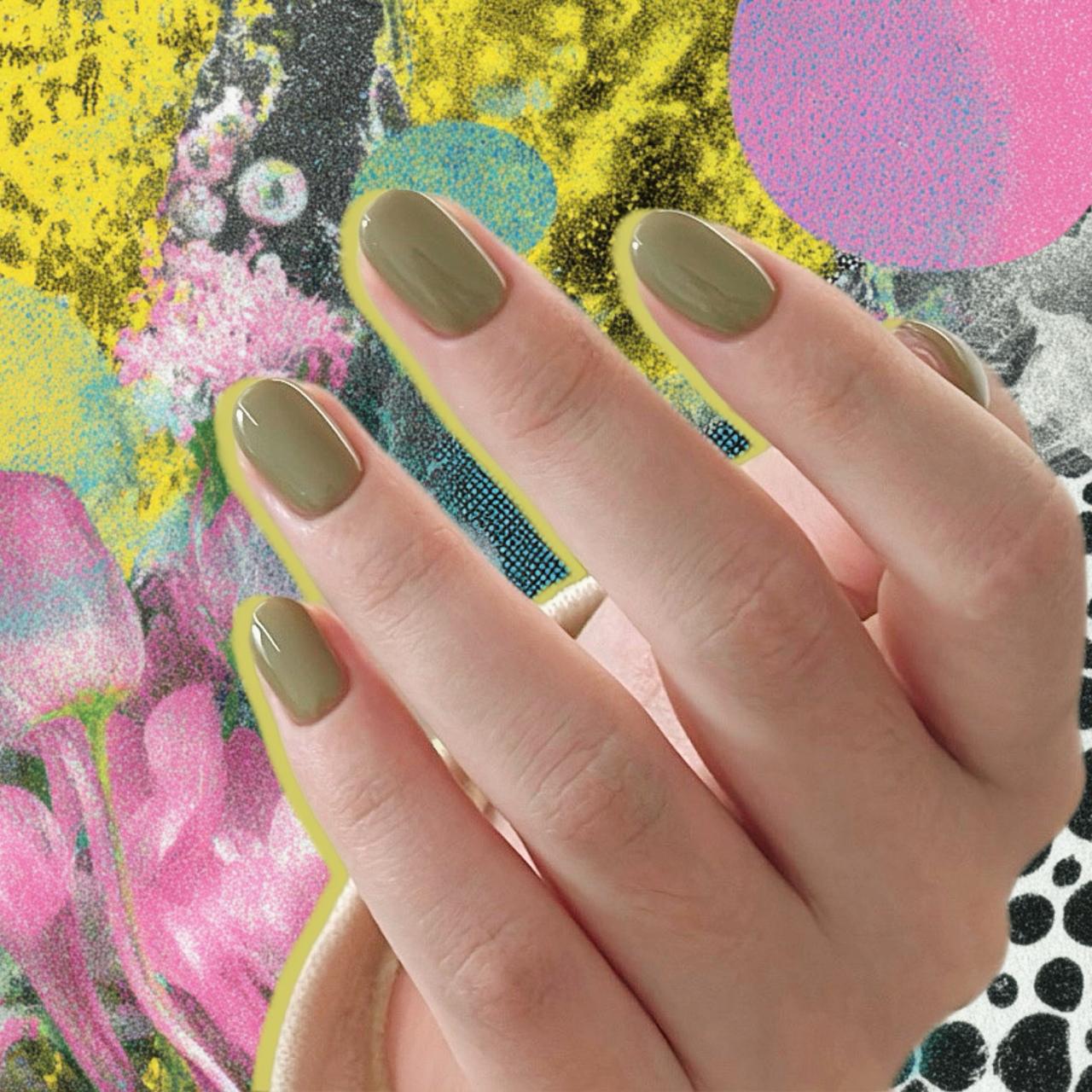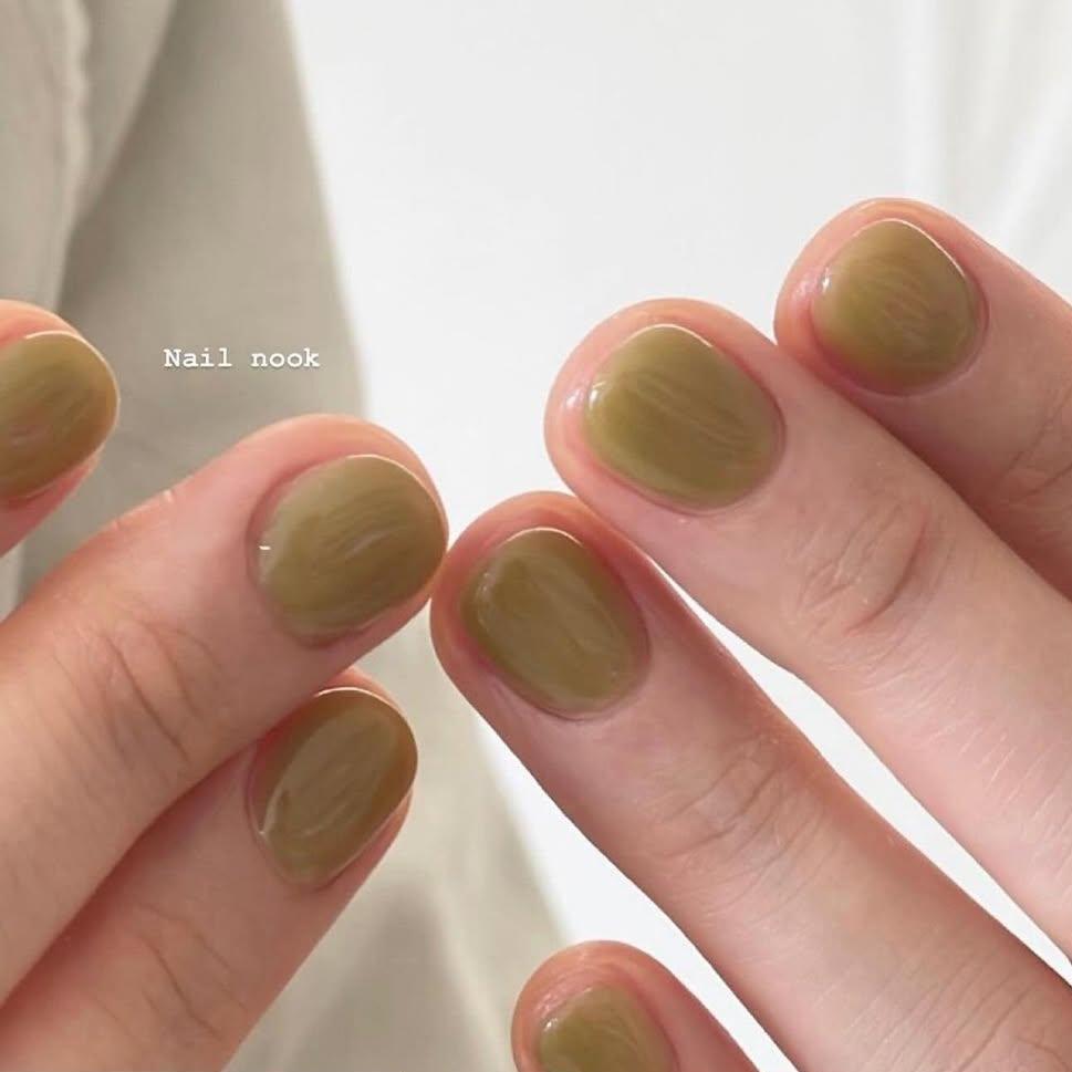 А если ты любишь смелые образы, то советую обратить внимание на нюд в оливковом оттенке. Это полупрозрачный лак, который смотрится очень нарядно и необычно. Кому-то покажется, что он желтит ногти, но если у твоих естественный розоватый цвет, то переживать не стоит.