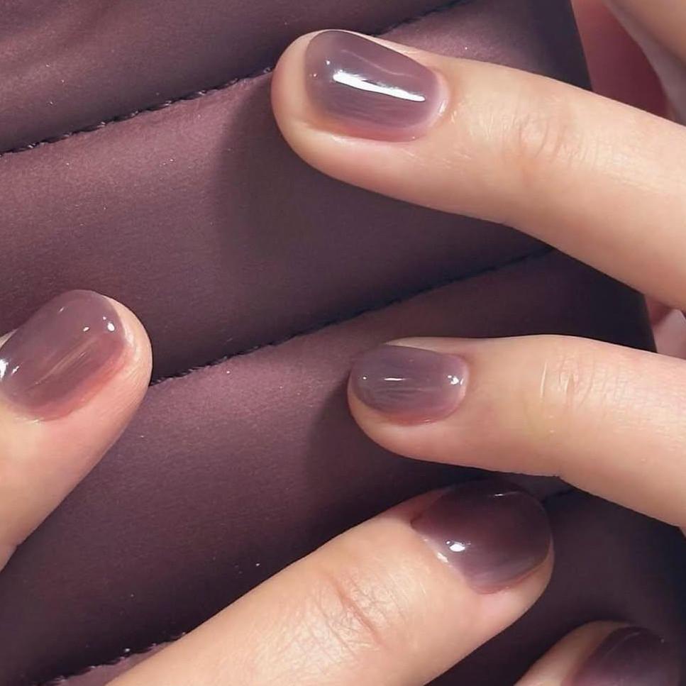 Цвет кожуры винограда выглядит просто роскошно! Он глубокий и вполне насыщенный, но при этом он смотрится нейтрально. Особенно хорош этот цвет в полупрозрачной текстуре с красивым глянцевым финишем. Наноси лак так, чтобы натуральный ноготь немного через него просвечивал.