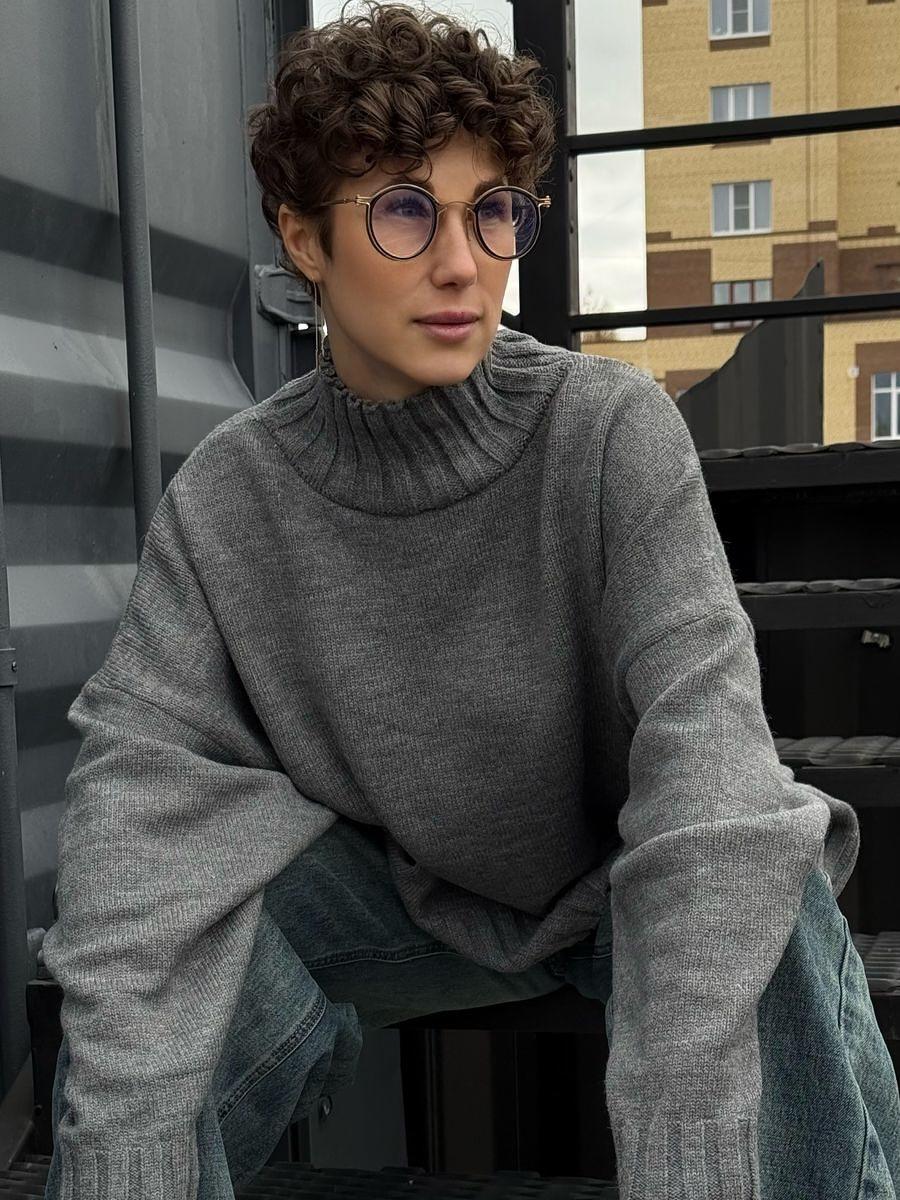 Ключ к образу — рваная кудрявая челка: многослойная, воздушная и непринужденно-изысканная. Она органично вплетена в короткие слои пикси, создавая эффект естественной, но ухоженной текстуры. Кудрявые пряди мягко обрамляют лицо, придавая игривость, динамику и легкую небрежность.