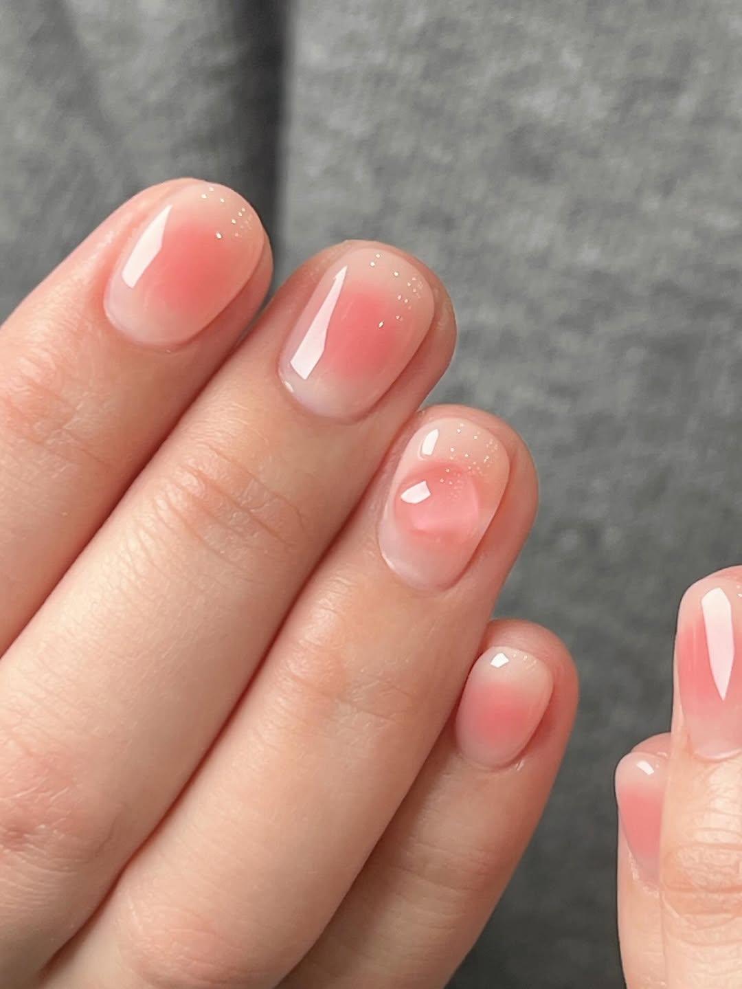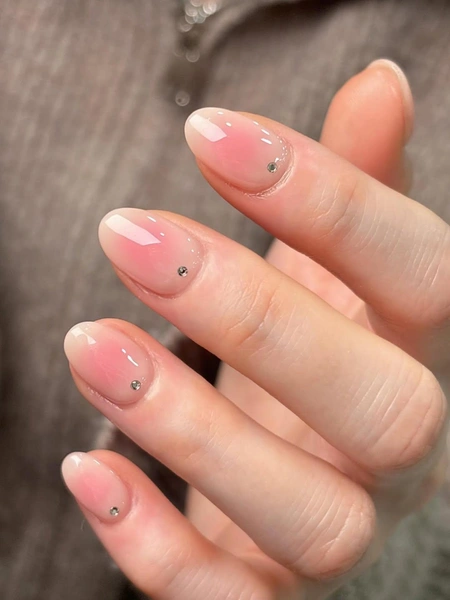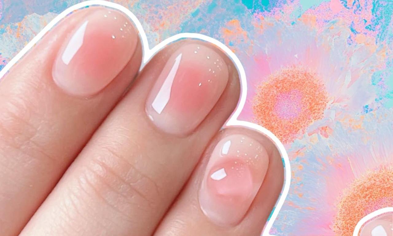 А вот еще один вариант молочного маникюра с розовой аурой. Такой дизайн ногтей может показаться скучным, если ты привыкла к более ярким дизайнам. В таком случае укрась ногти у кутикулы миниатюрными стразами.