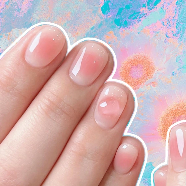 Персиковая аура на молочной базе — это идеальный милый нюд. Такой маникюр можно носить и на учебу, и на работу. А еще он понравится поклонницам нежности в образах. Если захочешь его разнообразить, добавляй объемные детали их прозрачного геля.