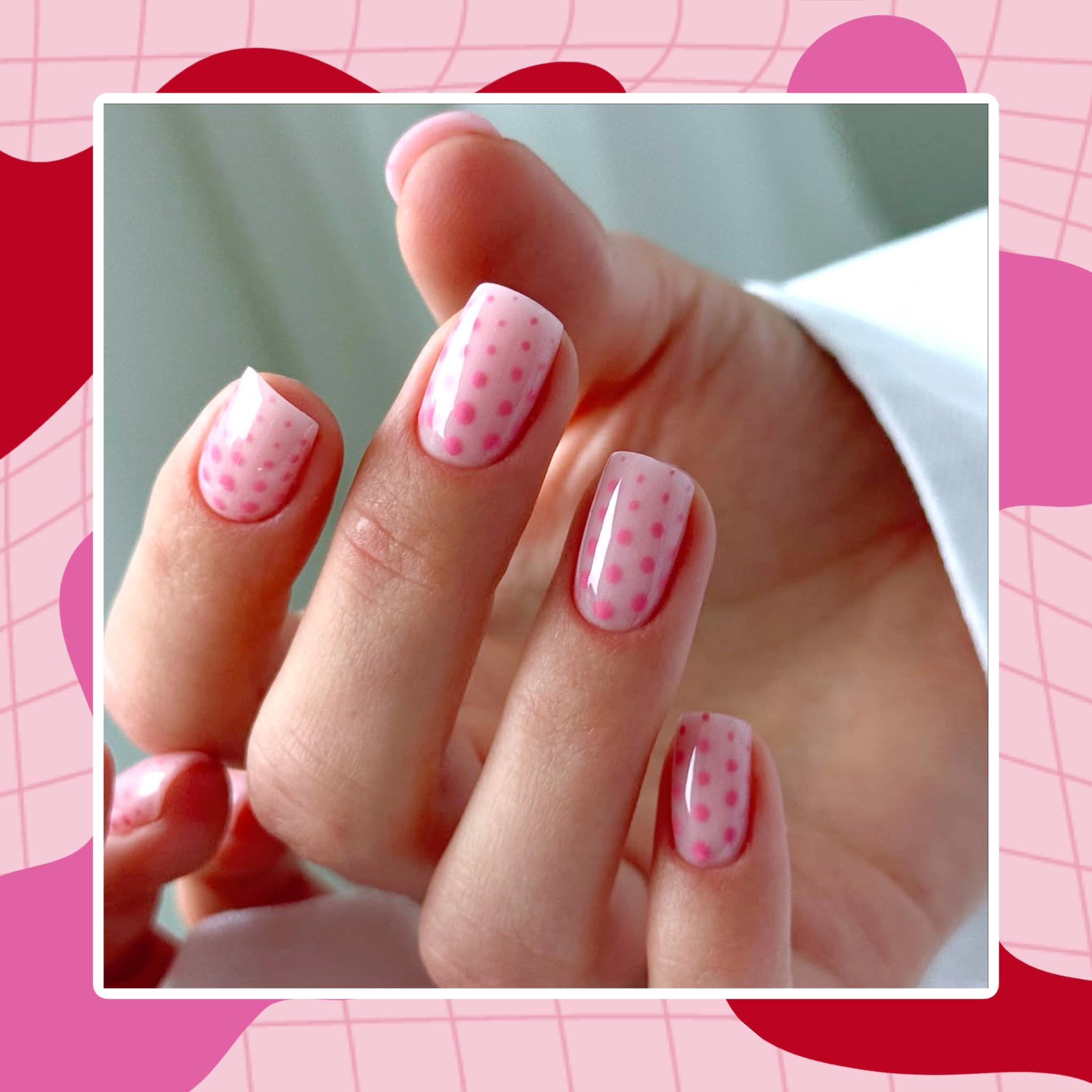 Вернемся в детство с этим очаровательным и игривым дизайном! Розовый маникюр в горошек — это мило, задорно и очень стильно. Мелкие точки, выполненные в более светлом или темном оттенке розового, на насыщенном розовом фоне создают эффект ретро-шика, который всегда поднимает настроение.