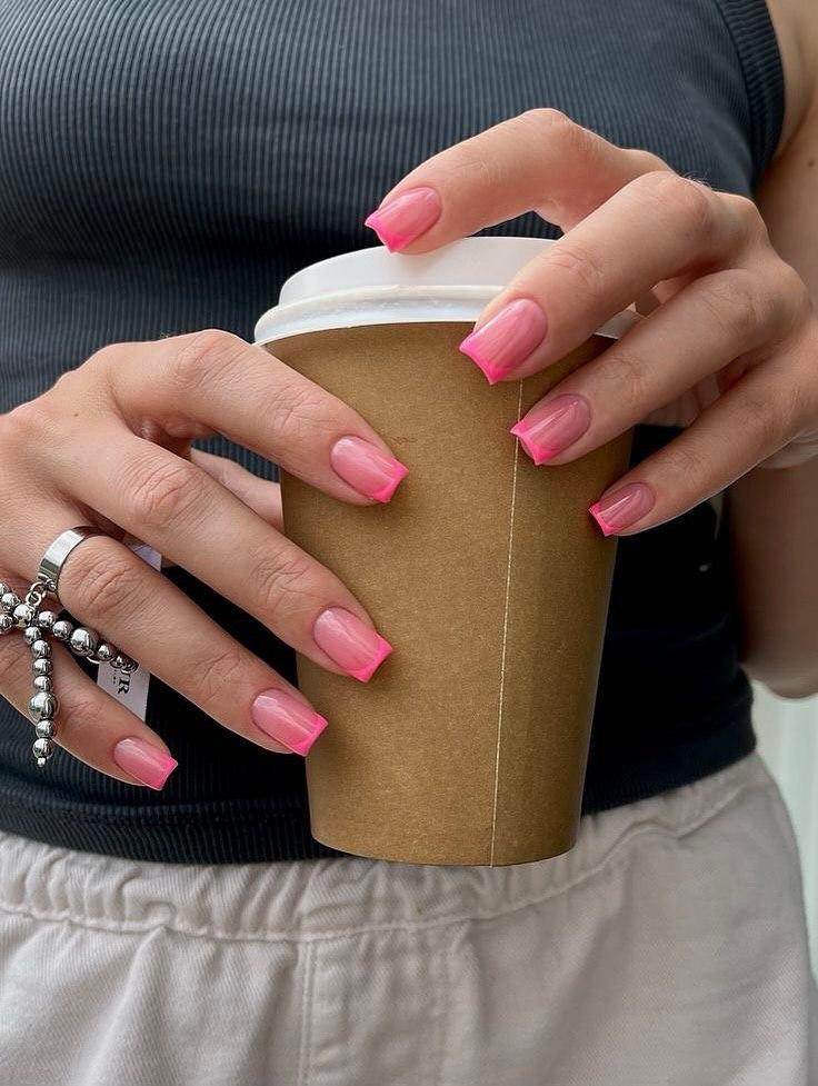 Классический французский маникюр может быть не только белым! Свежий взгляд на френч — это яркие розовые кончики. Такой дизайн выглядит очень стильно, современно и динамично. Он сохраняет элегантность классики, но при этом добавляет модный и сочный акцент.