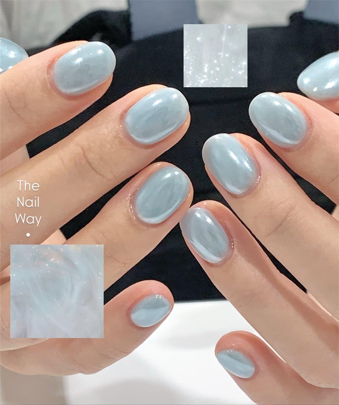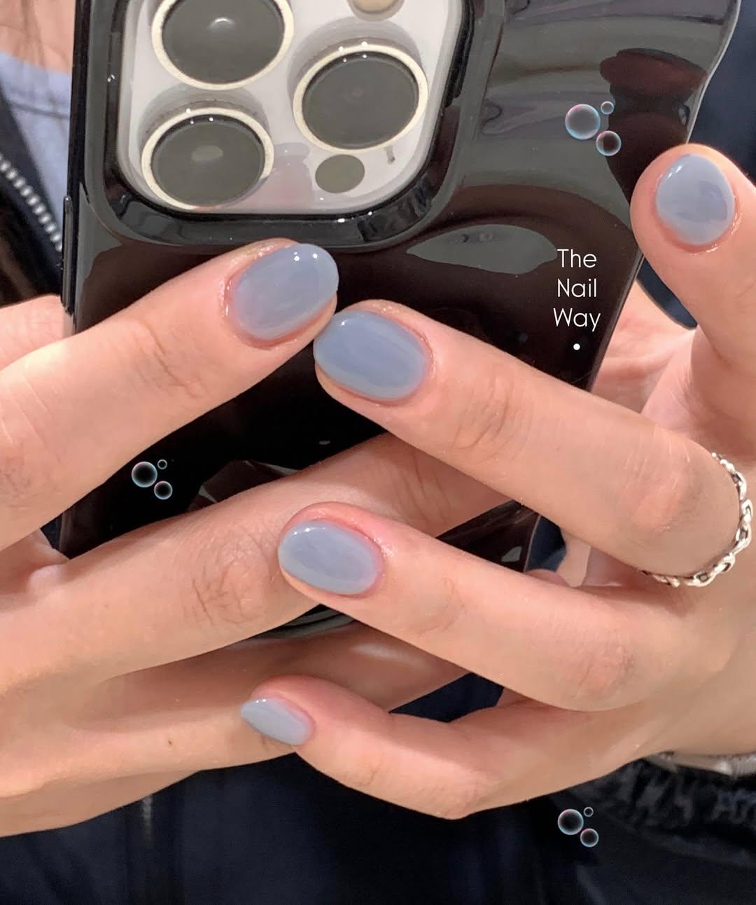А если тебе больше близок серый цвет, то найди лак, в котором он сочетается с голубым. Такой сложный и приглушенный оттенок — настоящий глоток свежего воздуха. Пока все носят темные цвета на ногтях, порадуй себя необычным серо-голубым маникюром.