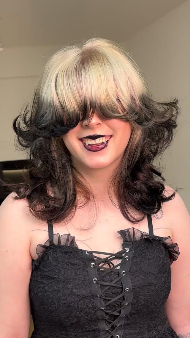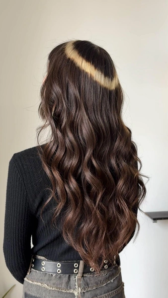 Светлая зона формирует тот самый «нимб» — ореол света вокруг головы. Граница между светлым и темным может быть четкой или размытой. Эта техника особенно хороша на длинных волосах, где контраст между светлым верхом и темным низом максимально заметен.