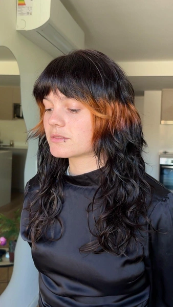 Оранжевая полоска на темных волосах