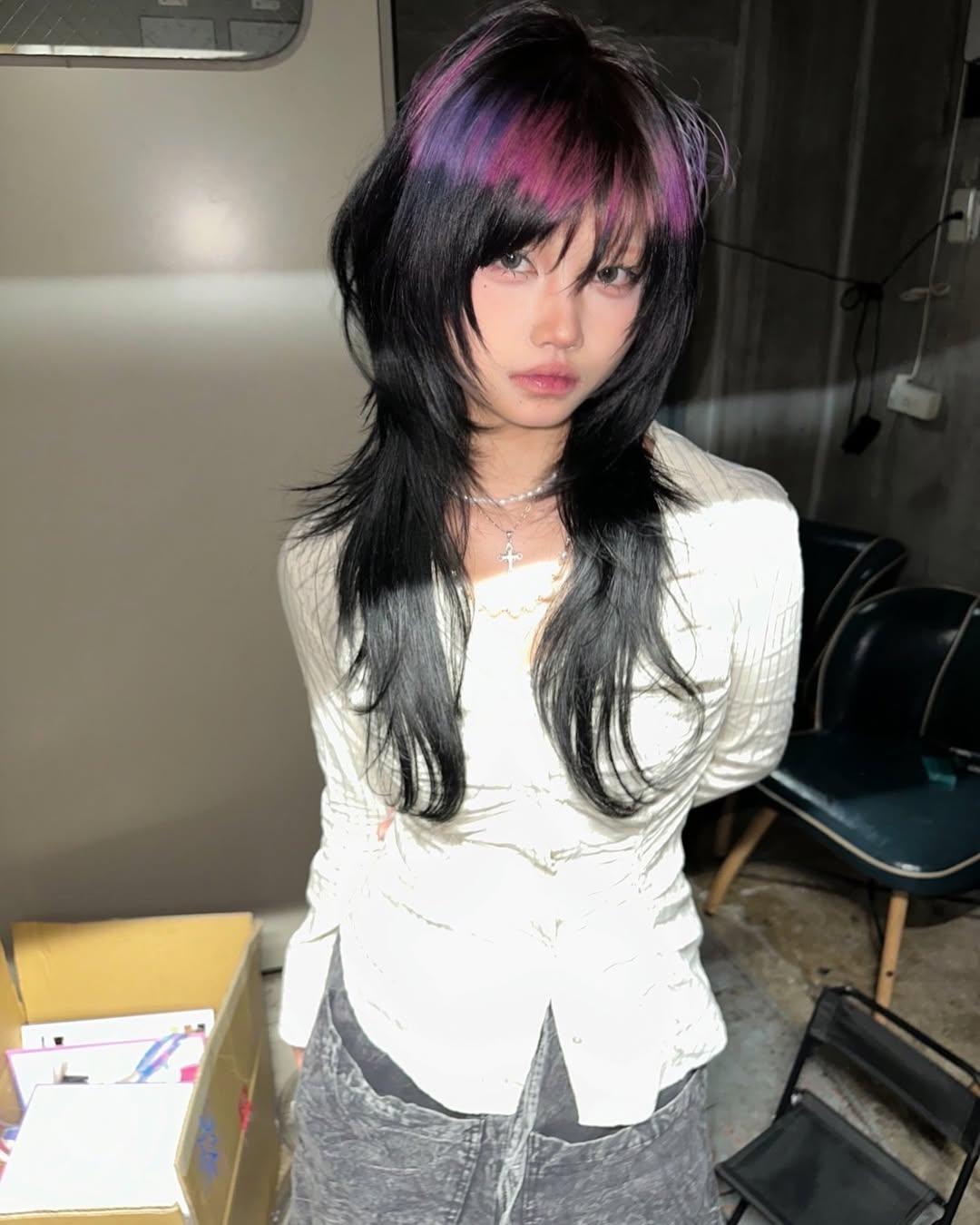 Вообще окрашивание «нимб» — это техника, при которой яркая полоса цвета создается вокруг головы, обычно на уровне от висков до затылка, напоминая, собственно, нимб или ореол. Все остальные волосы остаются в базовом цвете — обычно темном или натуральном. Это отсылка к экспериментальным окрашиваниям начала 2000-х, когда цветные пряди и необычные техники были на пике популярности. Давай посмотрим на восемь самых интересных вариаций этого тренда.