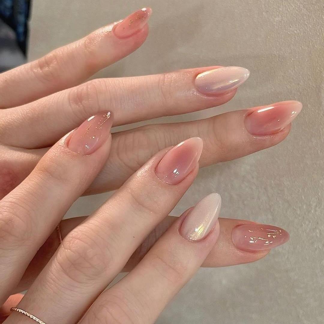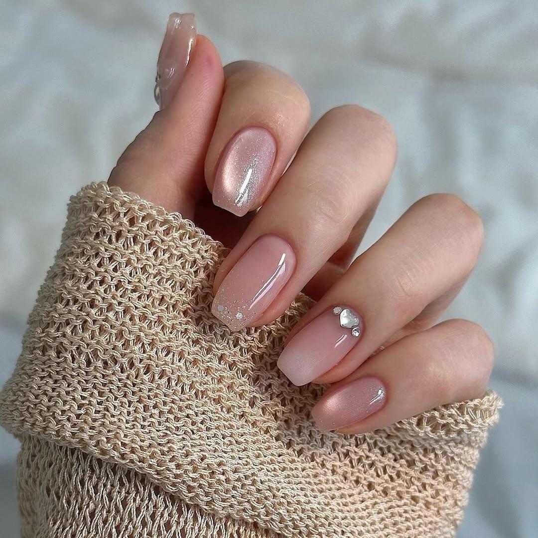 Блестящий нюдовый маникюр