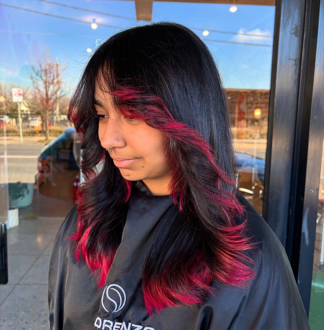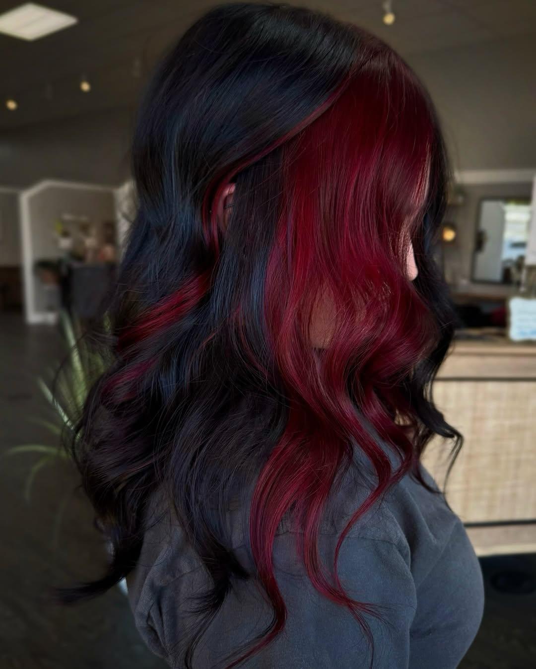 Сегодня красные пряди вернулись в моду, но стали гораздо более универсальными. Их можно добавить как отдельные акценты на темные волосы или сделать более мягкие переливы на светлых оттенках. Современные краски позволяют создавать стойкие и при этом щадящие варианты, так что яркие цвета держатся дольше, а волосы остаются здоровыми. Красные пряди — это отличный выбор для тех, кто хочет разнообразить лук, но не готов к полному окрашиванию в яркий цвет.