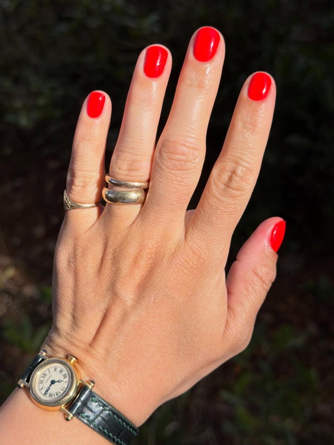 Яркий красный цвет тоже сделает твой образ более нарядным и благородным. Во-первых, это классика маникюра, которая подходит любой девушке. Во-вторых, он смотрится очень дорого: красный у многих ассоциируется с богатством. А в-третьих, красные ногти — яркие и нарядные, поэтому поднимают настроение.