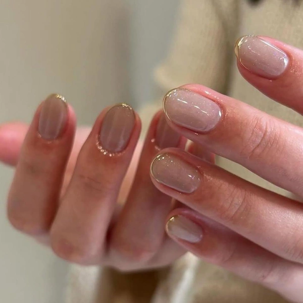 Тонкая линия френча смотрится очень свежо и стильно. Такой дизайн можно сделать на ногтях любой длины и формы, но в качестве базы советую выбирать плотный лак. Например, серо-нюдовый цвет с блестками как основа и золотистый френч. Смотрится такое комбо очень круто!