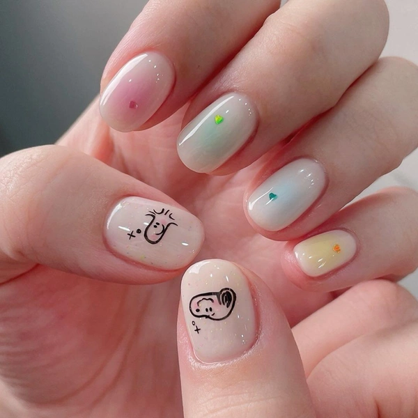 В этом сезоне место сложных и перегруженных дизайнов мастера предлагают более легкие и игривые варианты: пастельные оттенки, крошечные рисунки, прозрачные базы и детали, вдохновленные корейским нейл-артом. Эстетика k-beauty вообще заметно влияет на маникюрные тренды последних лет. А маленькие цветы, сердечки, тонкие линии, градиенты, полупрозрачные покрытия и едва заметный блеск выглядят особенно стильно именно на коротких ногтях.
