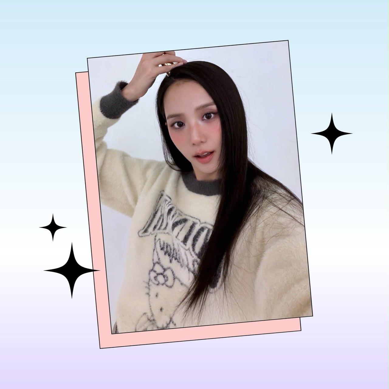 Певица скомбинировала макияж с абсолютно гладкими прямыми волосами. Она надела теплый свитер с изображением Hello Kitty. Наряд выглядит очень уютно! Легкий макияж с акцентом на глаза и мягкие уютные вещи — идеальная комбинация. Уверена, зимой тебе точно захочется повторить этот изящный образ Джису.