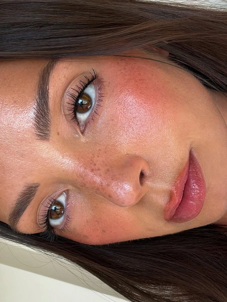 Один из самых интересных акцентов такого макияжа — отказ от туши. Минимально оформленные ресницы создают ощущение чистоты и хрупкости образа. Взгляд становится мягче, а акцент сразу смещается куда нужно — на губы и щеки. Если отказаться от туши пока сложно, попробуй заменить черное средство на коричневое.