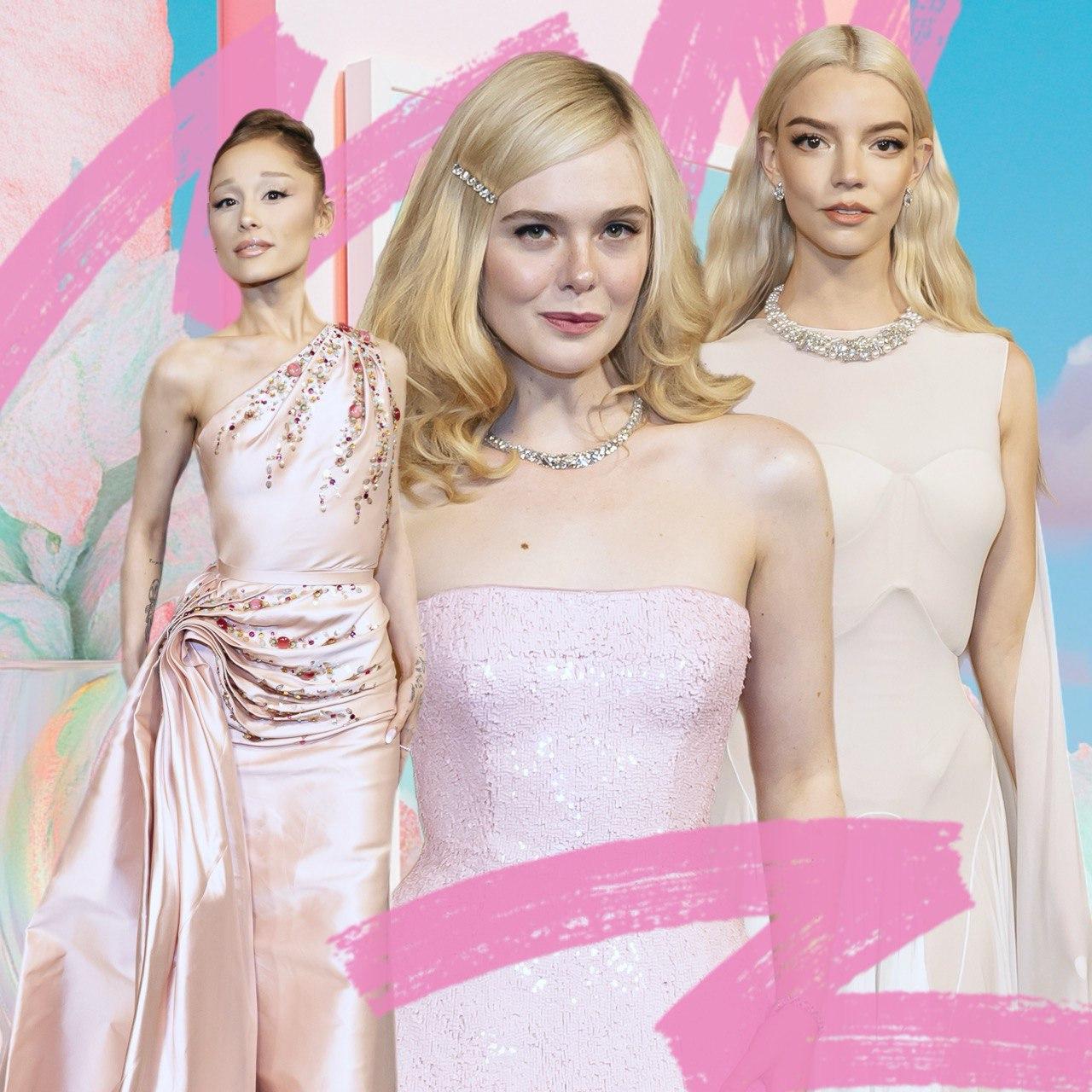 Ариана Гранде пришла в розовом атласном платье от Dior, которое на талии и плече усыпаны разноцветными стразами. Актриса продолжает внедрять в образ эстетику доброй волшебницы Глинды. Волосы она собрала в высокий пучок, а в макияже она использовала светлые оттенки: кремовые тени и розовый блеск для губ.